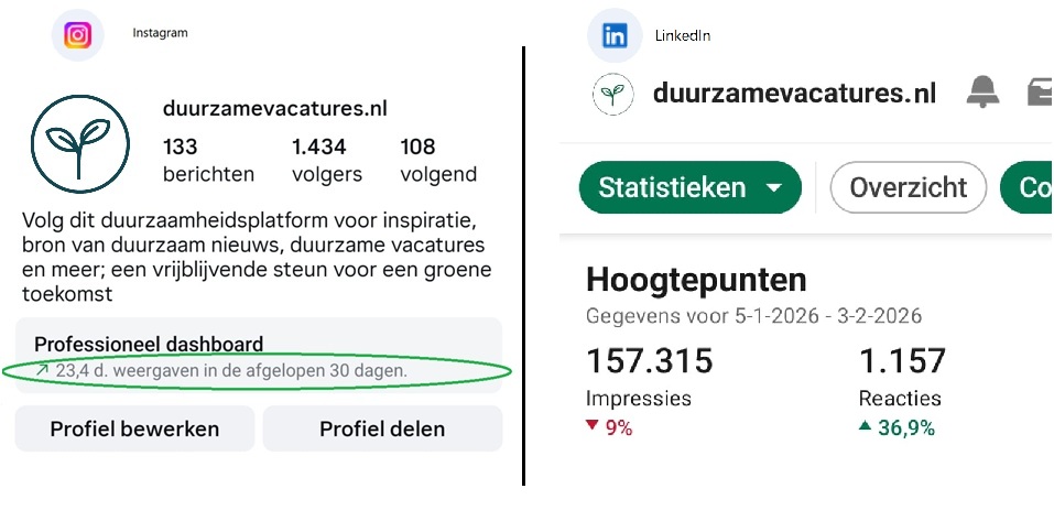 Plaats je duurzame vacature en bereik meer dan +20.000 duurzaamheids-professionals, door middel van ongeveer 175.000 gegenereerde views.