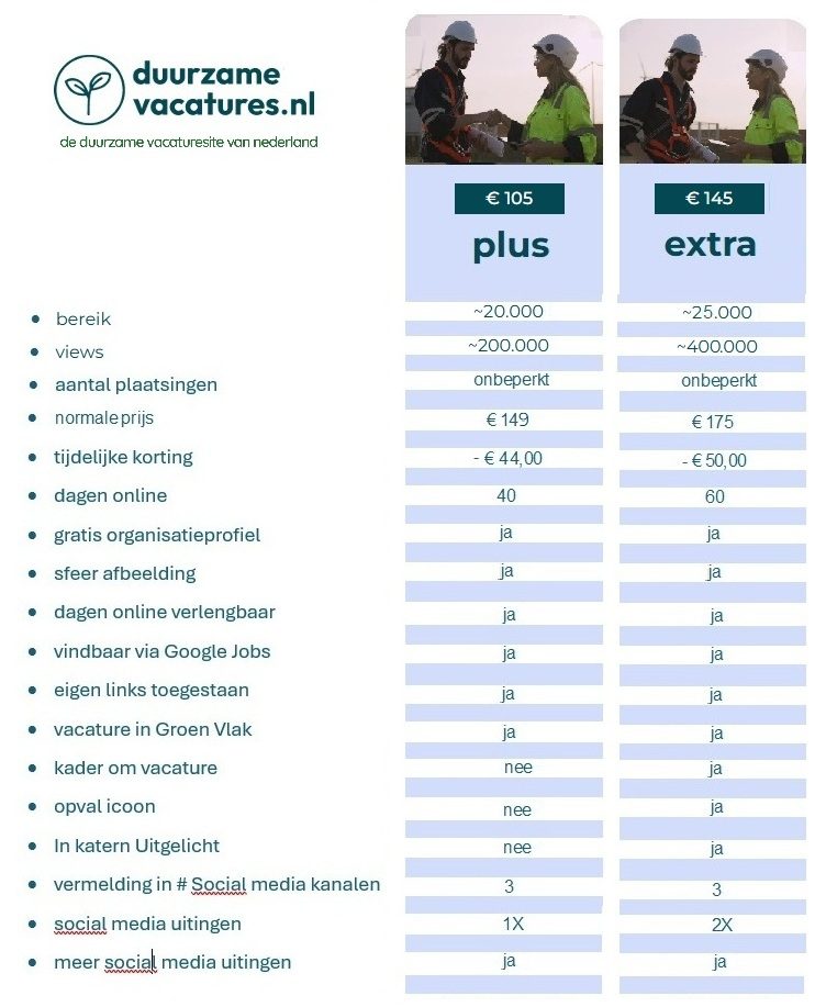 voordeeltarief voor afname meerdere duurzame vacatures tegelijkertijd